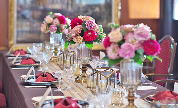 四季折々の花やお二人の思い出の花などを用いて、ドレススタイルに合ったウエディングブーケや会場コーディネート、テーブルコーディネートを経験豊富なフラワーコーディネーターが演出。お二人の思い描くイメージやコンセプトなどお二人の想いを込めたオリジナルコーディネートで、お二人とお越しいただくゲストの方々の記憶に残るコーディネートをご提案いたします。