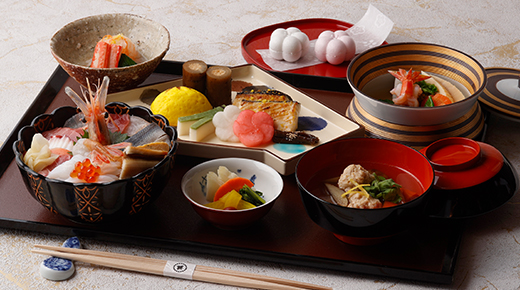 脂ののった冬の鰆を香り高い柚子とともに味わう焼き物や、旬の魚介を贅沢に盛り付けた海鮮丼や、竹の子・菜の花など春を告げる煮物、紅白の梅最中など季節感あふれる逸品を堪能いただけます。新年会や歓送迎会、お祝いの席にもふさわしい華やかなランチ限定御膳です。