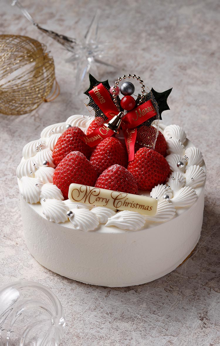 選び抜かれた大粒サイズの苺をたっぷりと使った、数量限定販売のクリスマスケーキです。スポンジには、卵やバターの風味をより引き立て、上品な甘さが楽しめる和三盆糖を使用。ふんわりと焼き上げたスポンジの間に、たっぷりの生クリームとスライスした苺を2段重ねにしています。上質な素材にこだわった本舘限定のプレミアムなクリスマスケーキです。